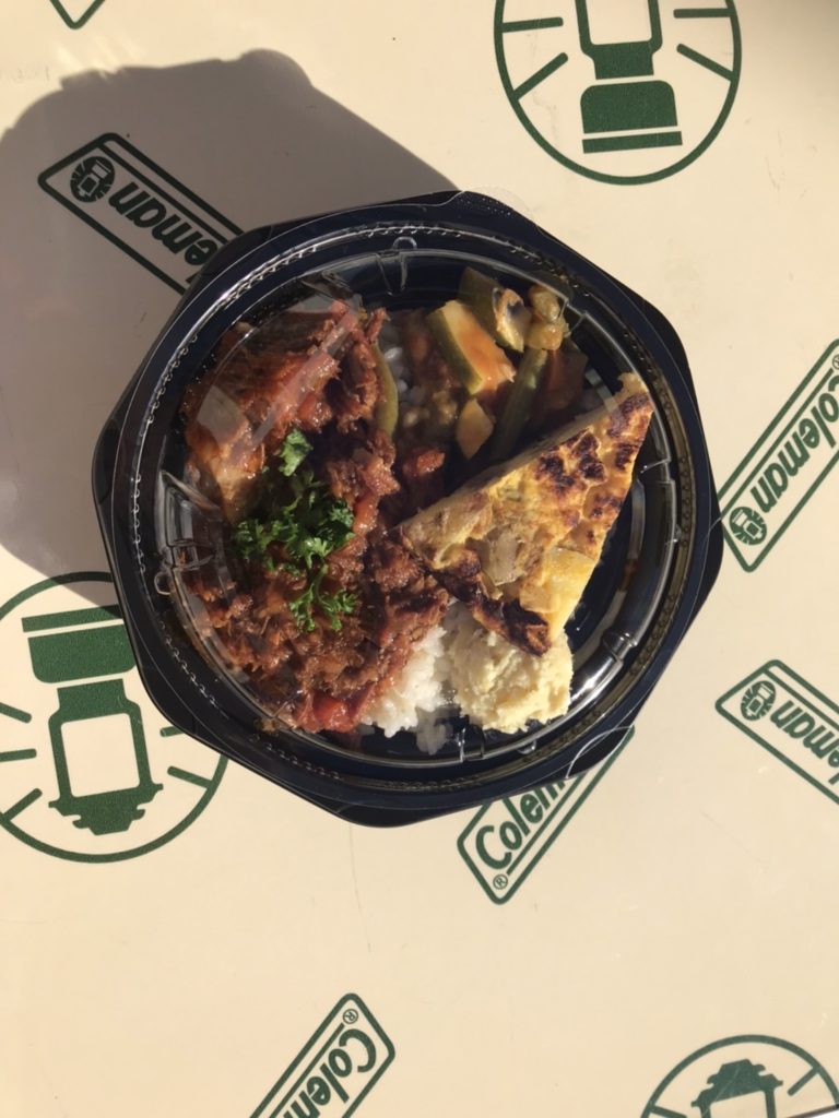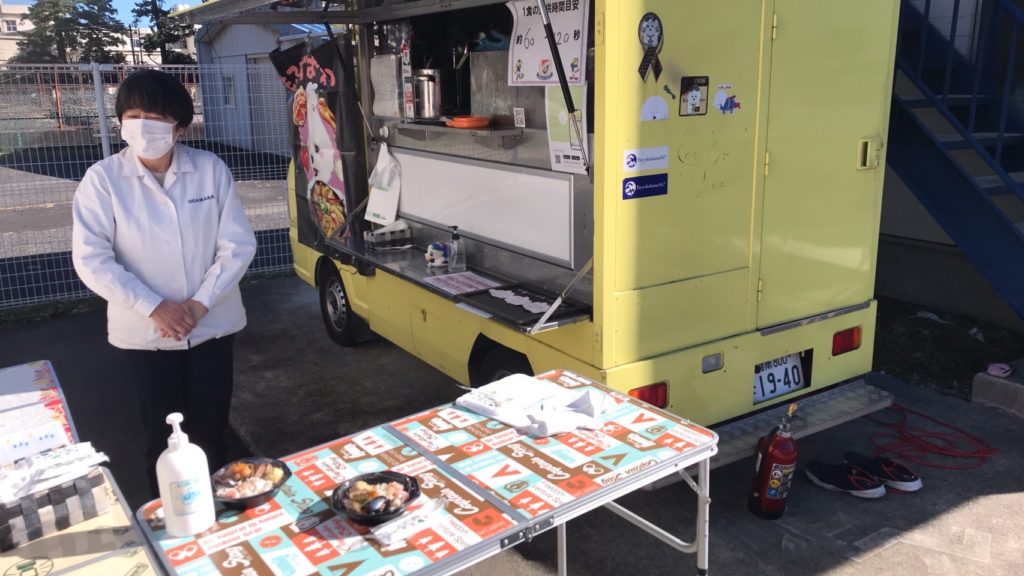 もふずぱえりや様に来て頂き、お楽しみ昼食です。 出掛けるのが難しいので、来てもらいいつもと同じ形で食事をとります。 牛すじとトマト、魚介のパエリアの2種類になります。