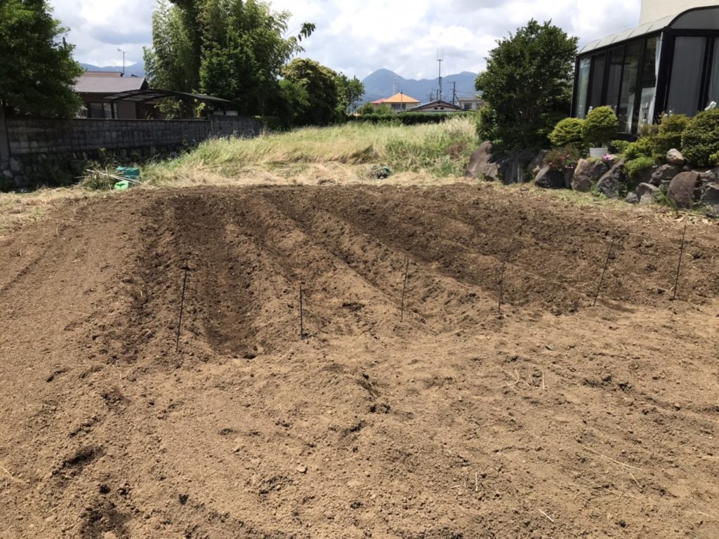 初めて握る鍬を使って、なんとか8畝出来ました。とっても良い汗をかきました。来週以降に、100株の苗を植えていく予定です。今から、秋の収穫が楽しみです。
