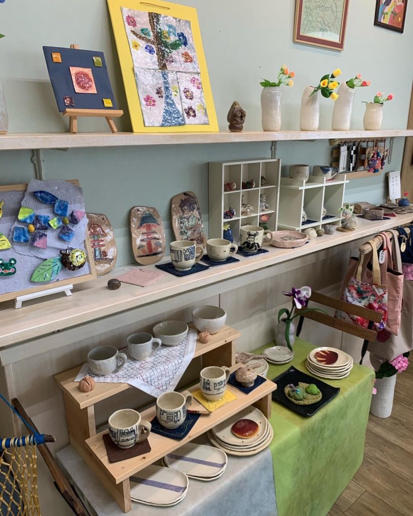 支援センターの利用者さんたちが作った作品がパン工房イースト展示、販売されています。