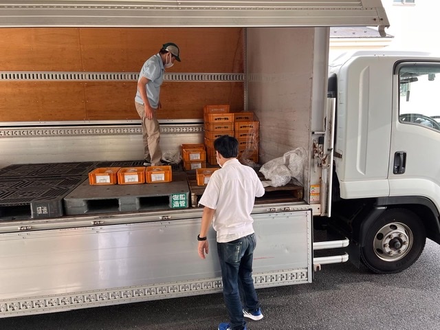 今日は久しぶりにトラックで納品なので朝から荷卸しを手伝ってくれています!