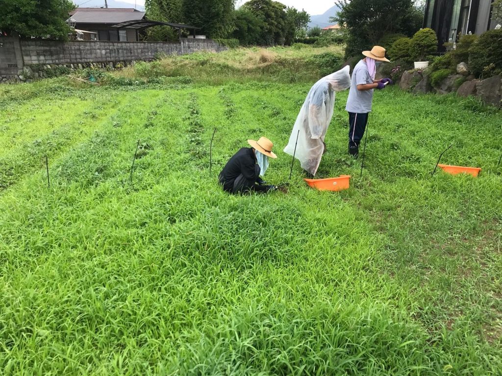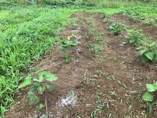 火曜日雨予報だったので雨降る前に、サツマイモの苗の草取りと肥料をしました。