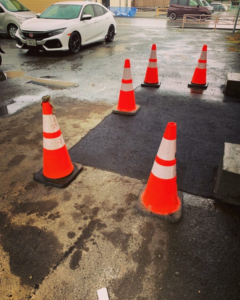 先日の台風で駐車場に穴が開いてしまったので工事してもらいました。