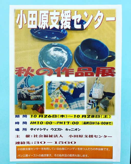 10/26〜28日までダイナシティ ウエストキャニオンで小田原支援センターの作品展を開催する事になりました!