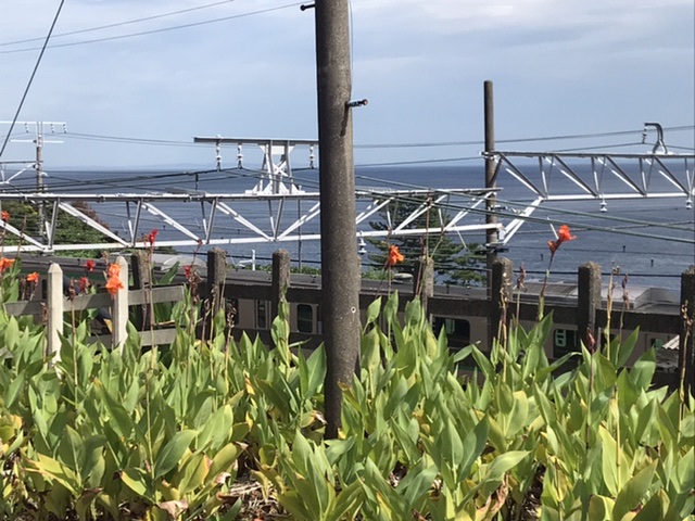 帰りに根府川駅でトイレ休憩すると、ちょうど電車が来ました。