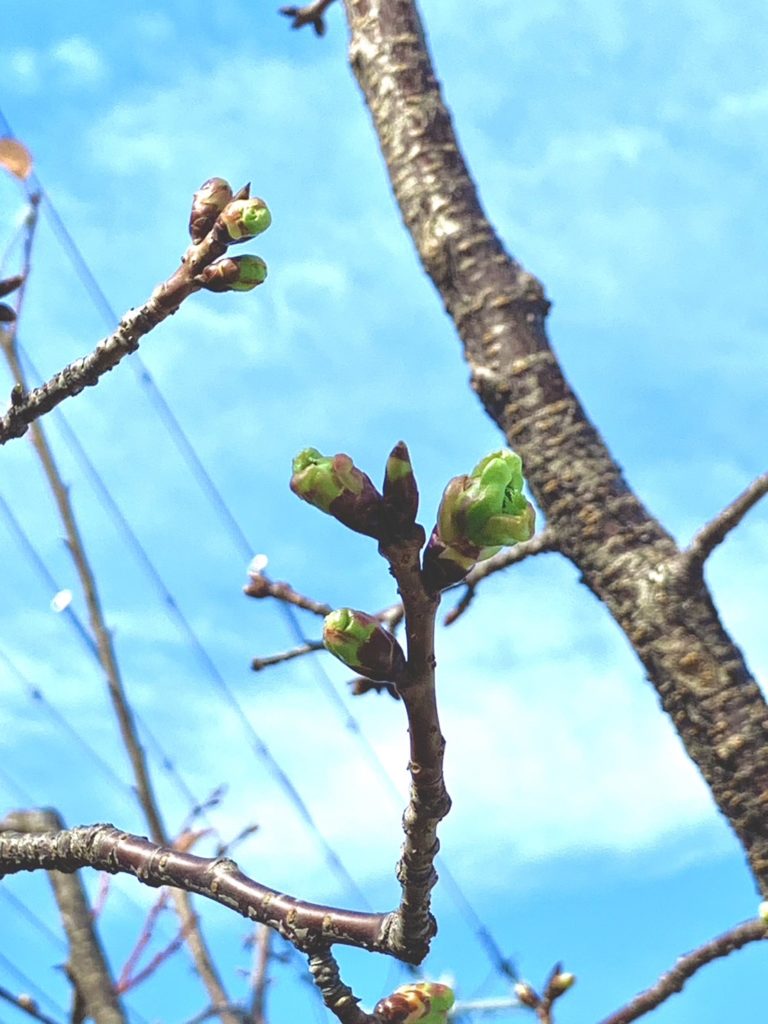 支援センター本部のおかめ桜の蕾が膨らんできました。
