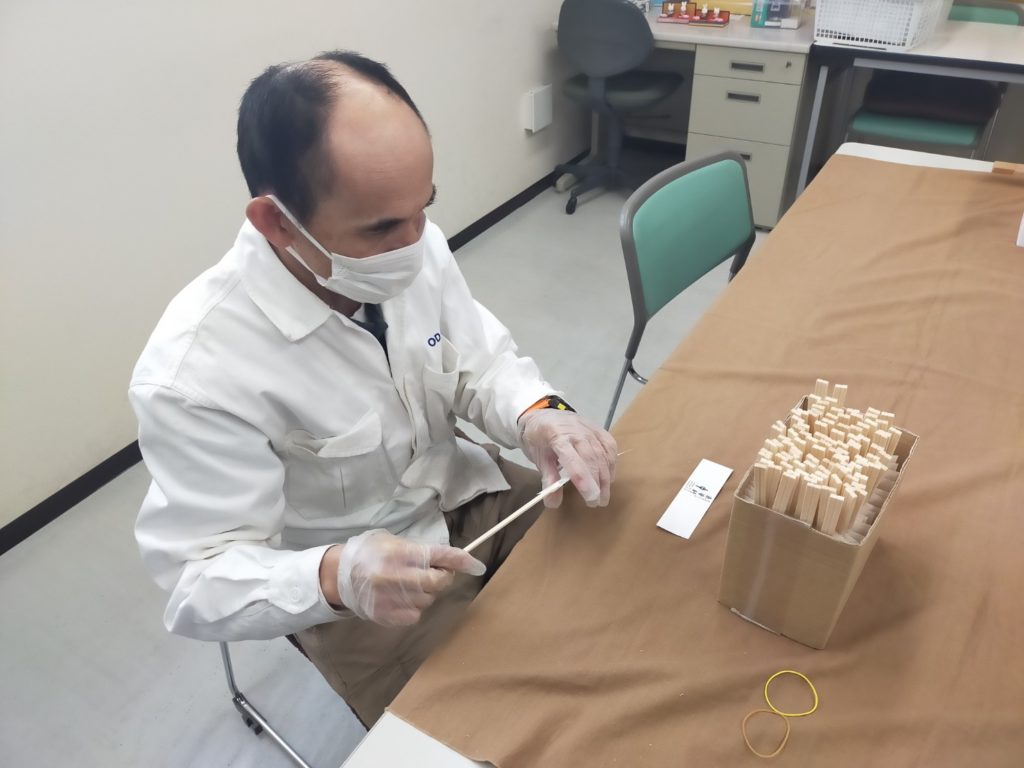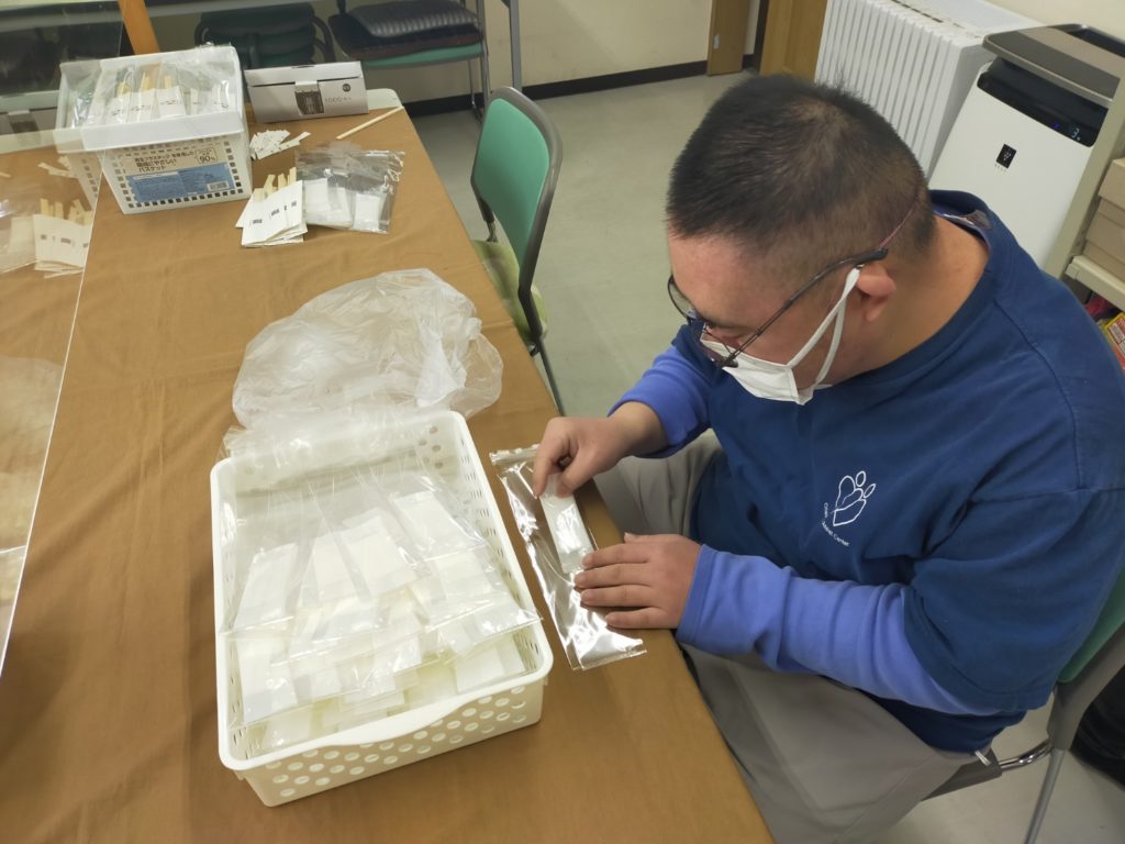 今日の作業は割り箸袋詰です。
