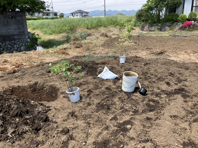 ブルーベリーの鉢を栢山の畑に移植しました。