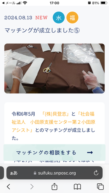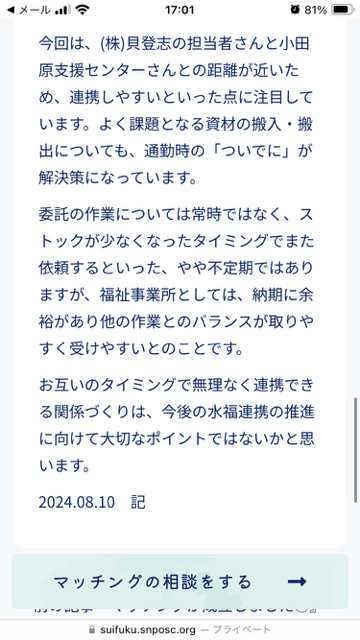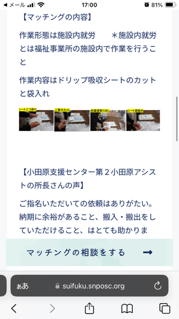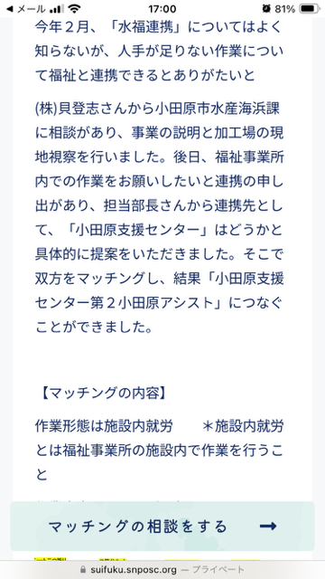 湘南NPOサポートセンター様のHPに、水産と福祉のマッチング事業の事例として紹介されました。