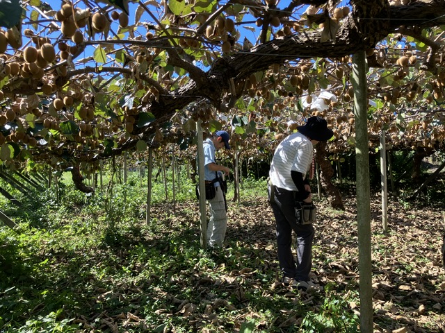 昨日、近藤園様からキュウイフルーツ畑での摘果作業に依頼があり、数名で午前午後と行って来ました。本来は、もっと早い時期に行うようですが、忙しくまたいつもお手伝いしてくれる方の都合がつかず、急遽の依頼となりました。