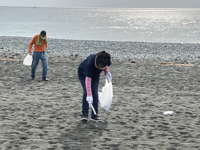 海岸清掃中