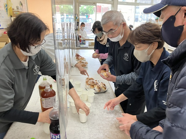 第2アシストに戻って、作業した方たちと一緒に、軽食(職員が用意してくれました)を食べました。