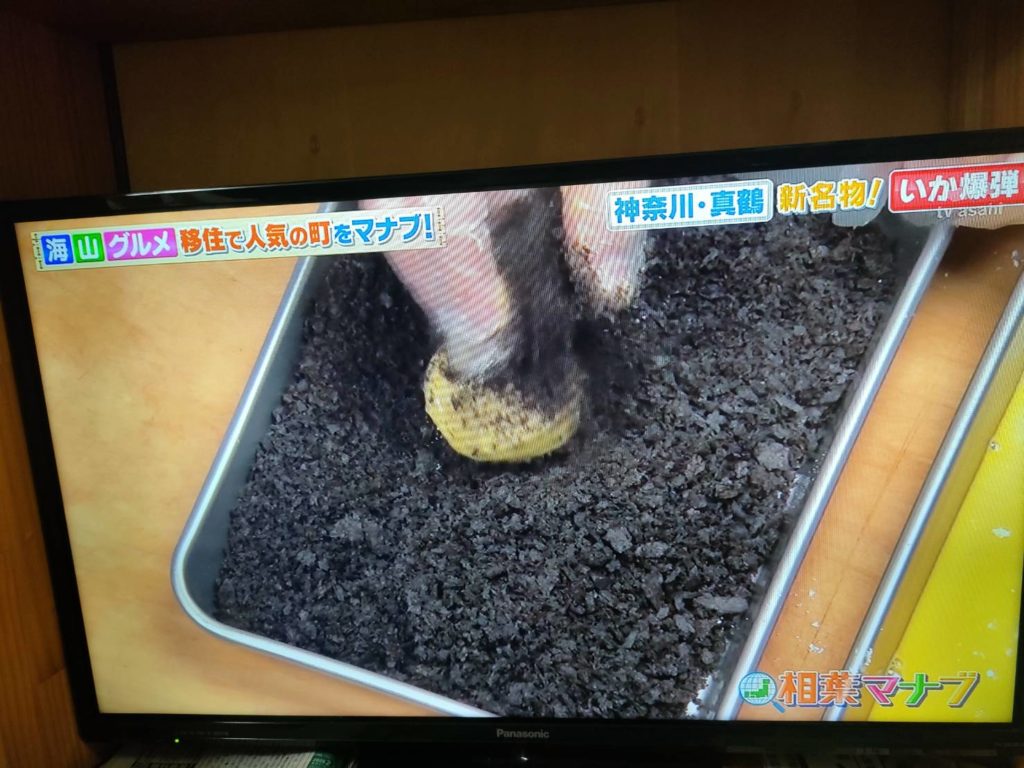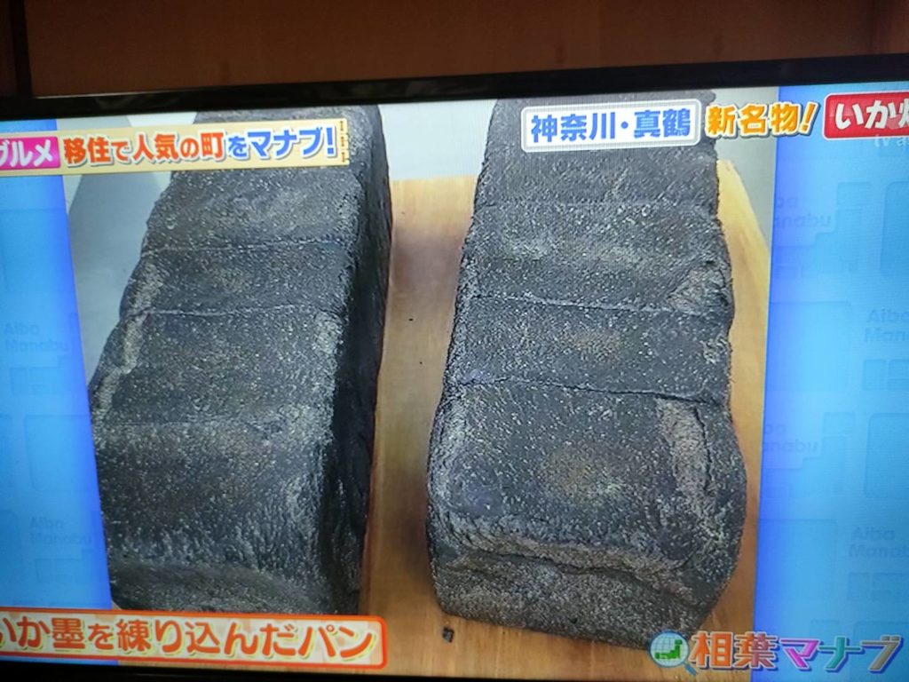 昨日の「相葉マナブ」にて紹介された真鶴のイカ爆弾に使用しているパン工房イースト製造のイカスミ食パン。残念ながらパン工房イーストというワードは放送されなかったですが、初のテレビ出演でした!