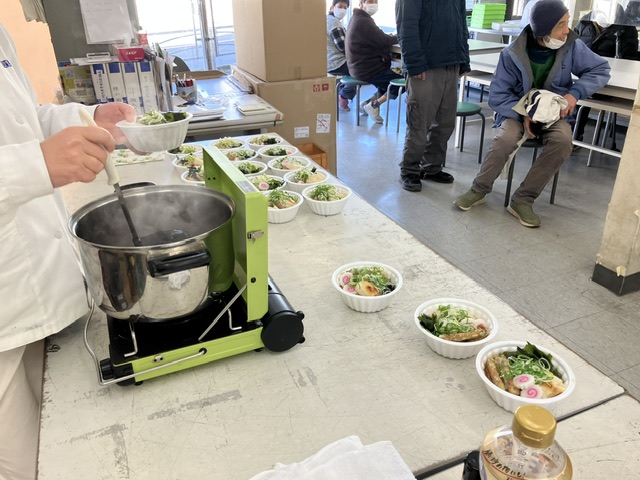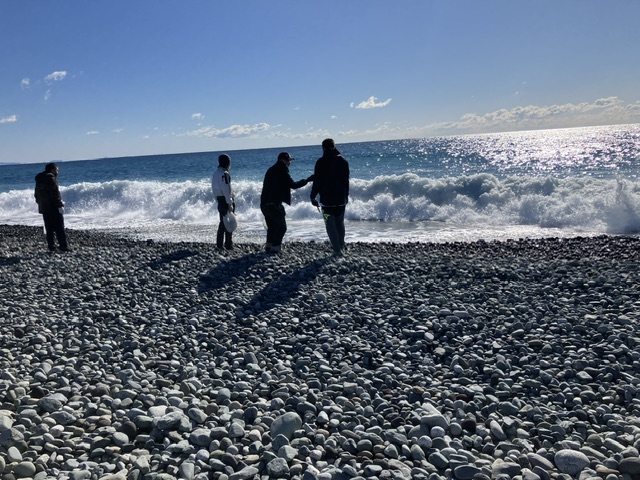 東町海岸の清掃をしました。日差しが暖かったのですが風が冷たく、軽食に用意した『力うどん』が好評でした。参加されたみなさんお疲れ様でした。