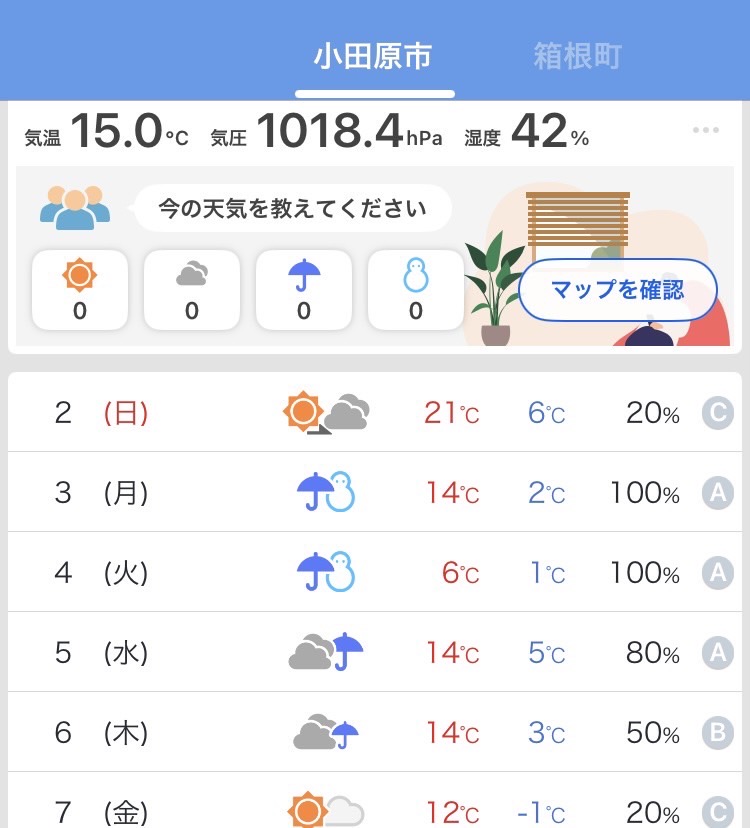 気温は16℃くらいでしょうか、週末は4月並みの暖かさの予報です。