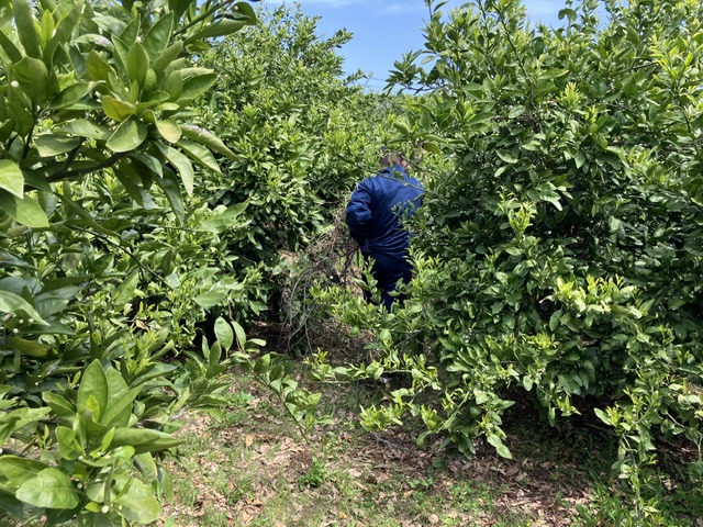 本日は、みかん畑、キュウイ畑の枝野回収作業を行いました。