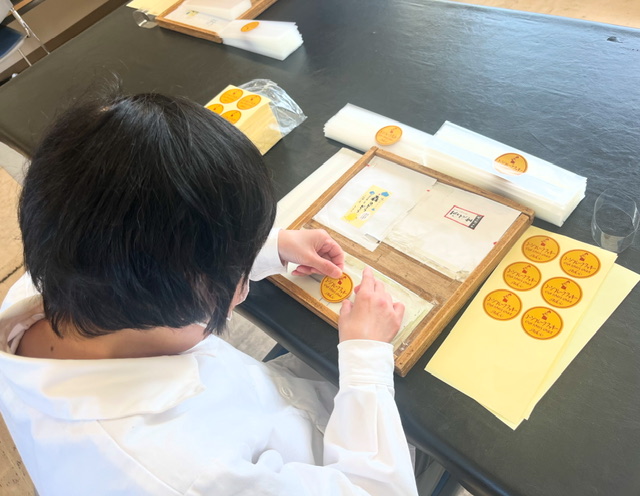 いつもは第二アシストで行っているクッキーのシール貼りを今日はアシストで行いました。