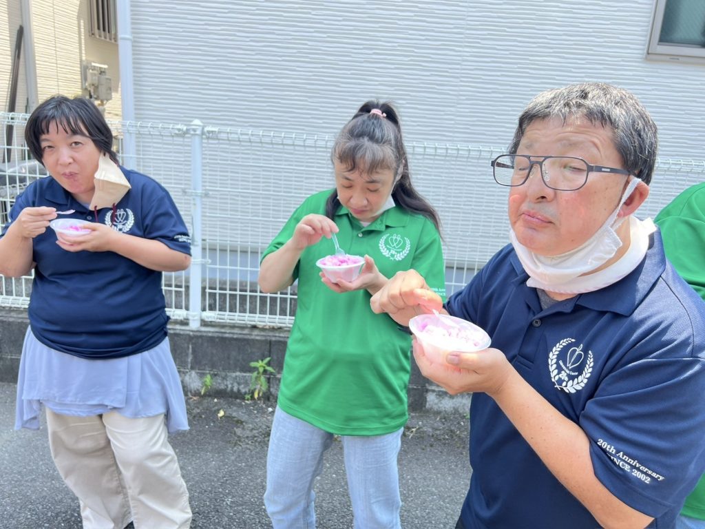 あまりの暑さに本日かき氷大会開催しました。