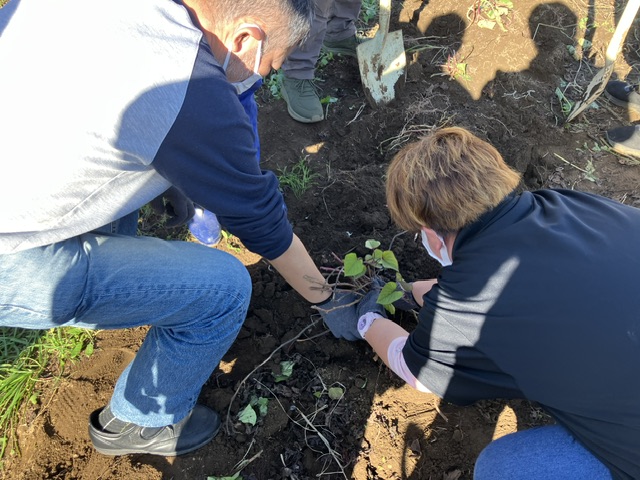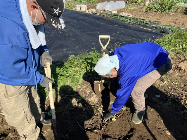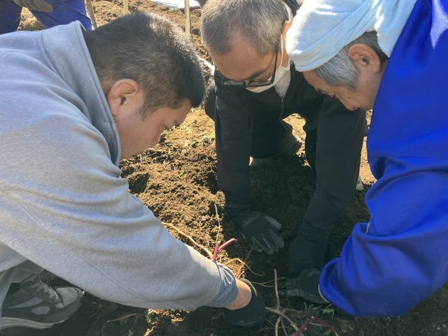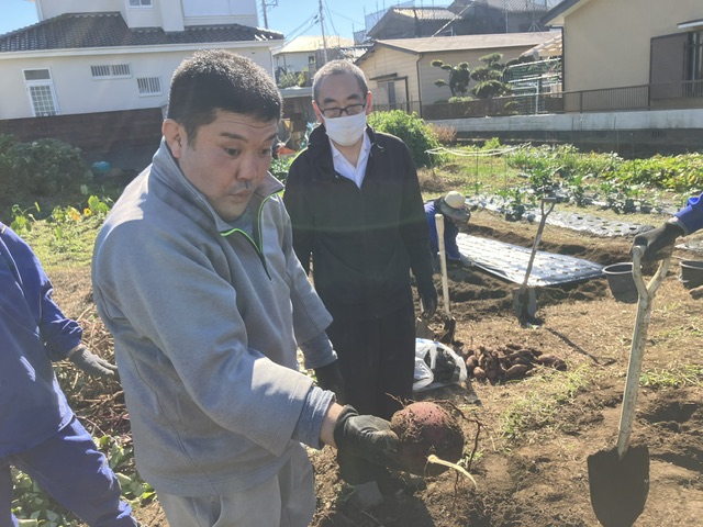 先週の金曜日に、東町の畑でサツマイモ掘りをしました。大勢のメンバーが参加でき、初めての体験の方も多かったのですが、大変楽しく満足できるひとときとなりました。