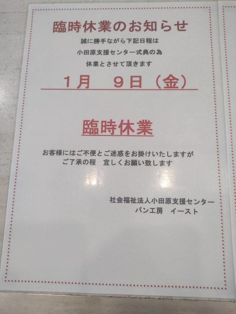 1/9金曜日は当法人の新年と永年勤続者を祝う会が開催される為、臨時休業とさせて頂きます。