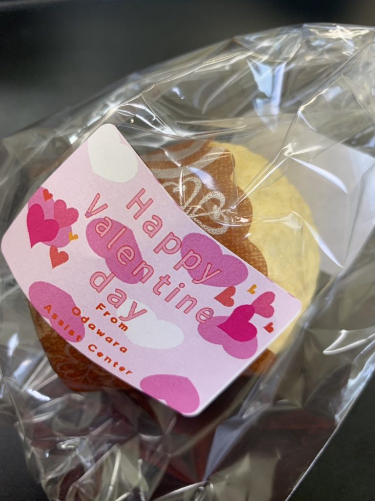 明日がバレンタインデーですが今日、支援センターの皆さまへパン工房イーストからケーキのプレゼントです。