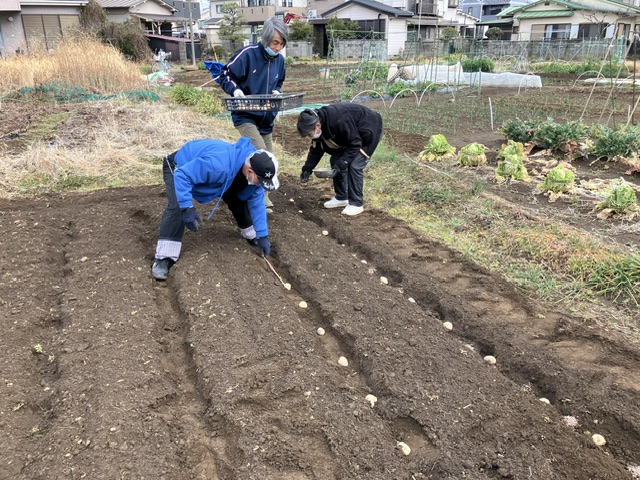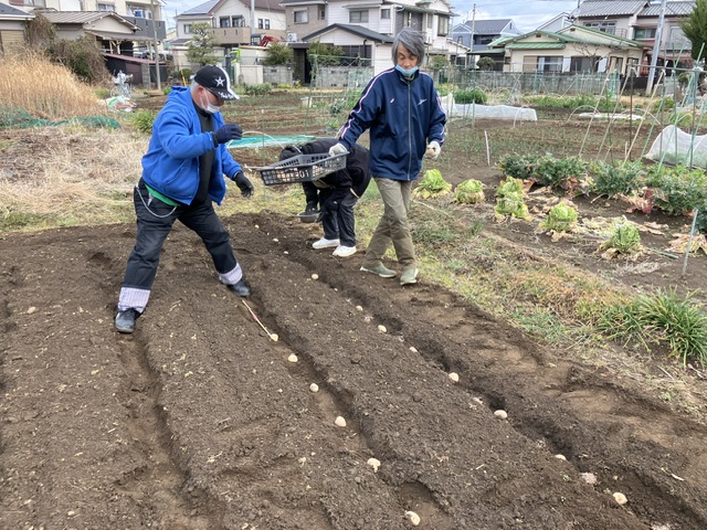 火曜日に東町の畑にジャガイモを植えました。