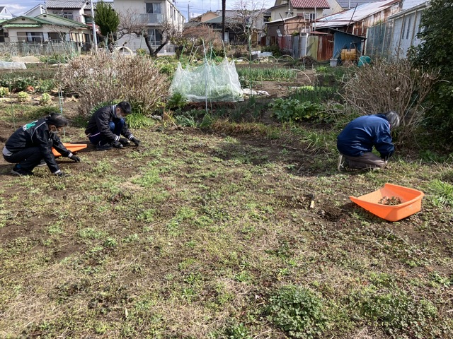 火曜日に東町の畑の草むしりのお手伝いをしました。もう少し暖かくなったら、里芋を植える予定たそうです。